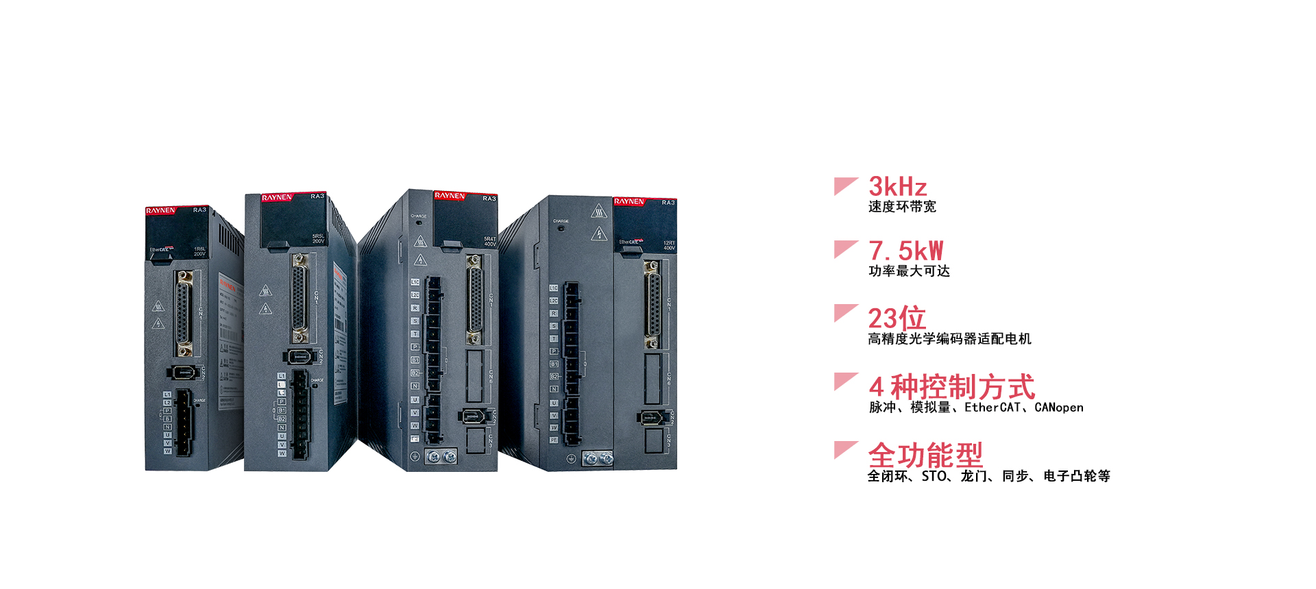 RA3系列全功能型伺服驅(qū)動器是睿能科技依托第三代研發(fā)技術(shù)平臺打造的全新伺服產(chǎn)品,具備高精度、高響應(yīng)、高防護等特點,廣泛適用于機器人、鋰電、電子設(shè)備、紡織、包裝、機床和木工等行業(yè),顯著提高機械設(shè)備生產(chǎn)效率。