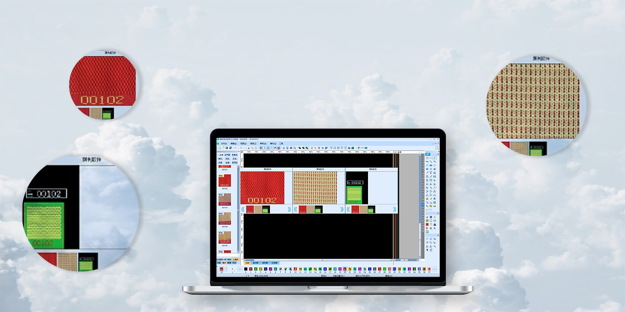 系統(tǒng)根據(jù)菲林尺寸自動(dòng)放縮制版花樣,花紋組織一鍵自動(dòng)匹配