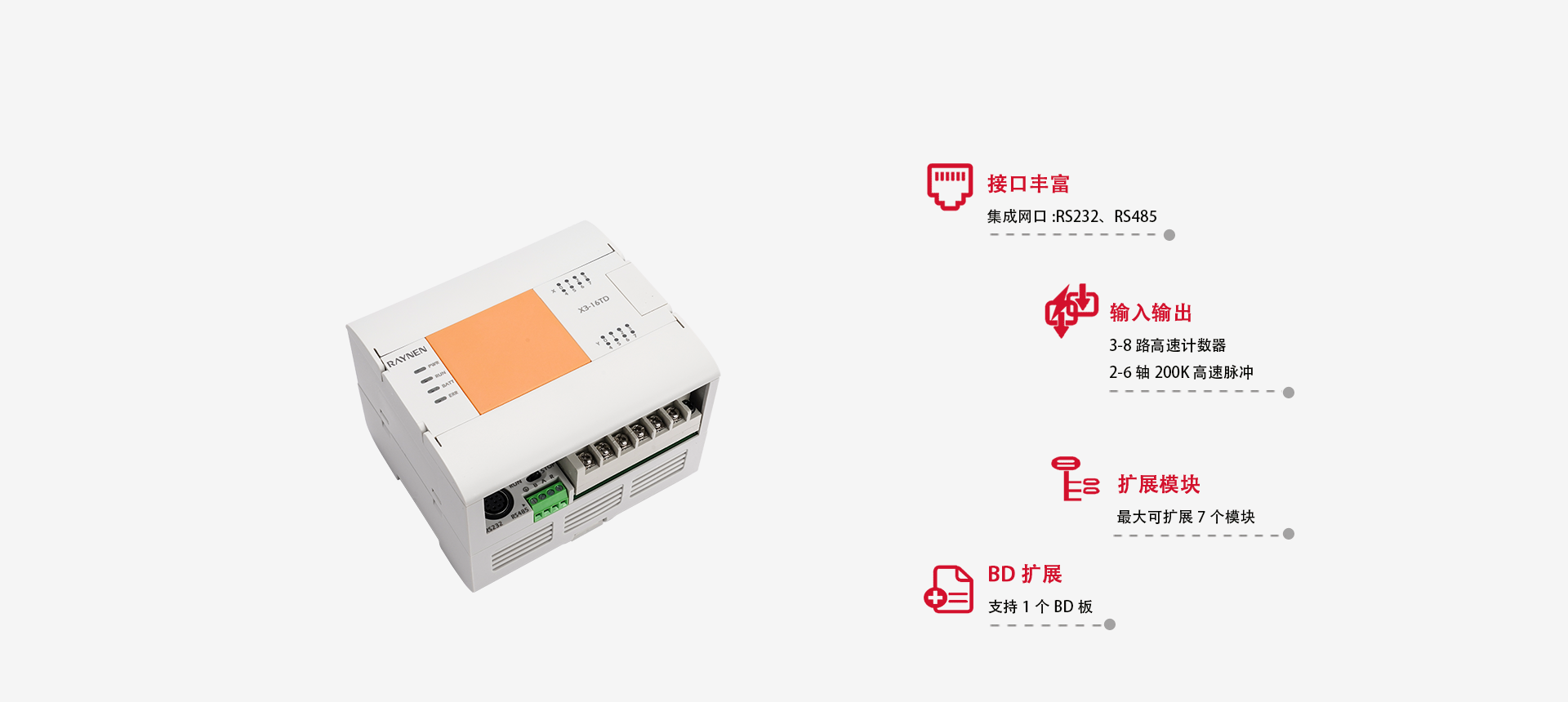 ▲ 具備2-6 軸高速脈沖輸出,高速計(jì)數(shù)、直線(xiàn)插補(bǔ)和圓弧插補(bǔ)等運(yùn)動(dòng)控制功能